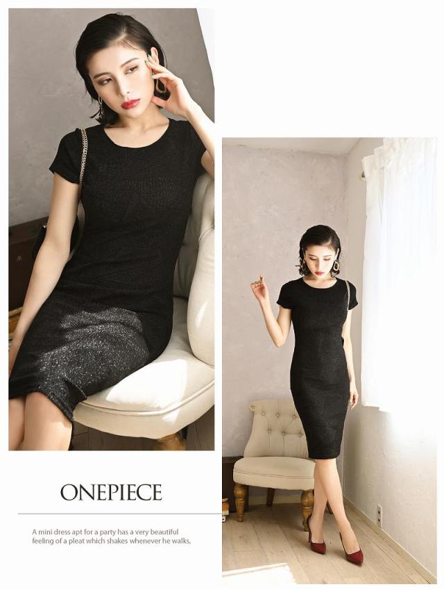 キャバ ワンピース ワンピ キャバワンピース レディース パーティードレス DaysPiece 幾何学柄 ラメ シンプル タイト