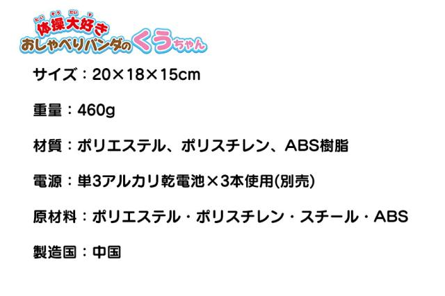 体操大好き おしゃべりパンダのくうちゃん ぬいぐるみ パンダ しゃべる 動く ラジオ体操 会話 音声認識 かわいい モフモフ ふわふわ 縫いぐるみ 話せる 歌う 喋るぬいぐるみ 動くぬいぐるみ 多機能 音量調節 お友達 一人暮らし ペット お年寄り 癒し 寂しい 話相手 キッズ こども 子供 幼稚園 保育園 シニア 高齢者 使い方 おすすめ 人気 男性 女性 おじいちゃん おばあちゃん 孫 効果 比較 ランキング 誕生日 父の日 母の日 敬老の日 クリスマス ギフト プレゼント 贈り物 口コミ クチコミ レビュー 評判 通販 くうちゃん くーちゃん クーちゃん パンダのくうちゃん