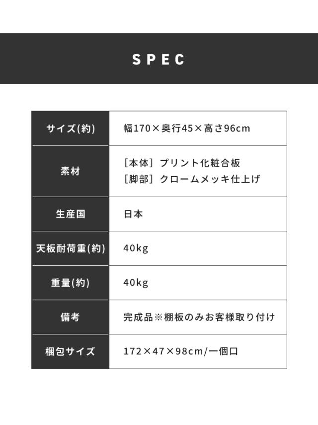 幅170×奥行45×高さ96cm