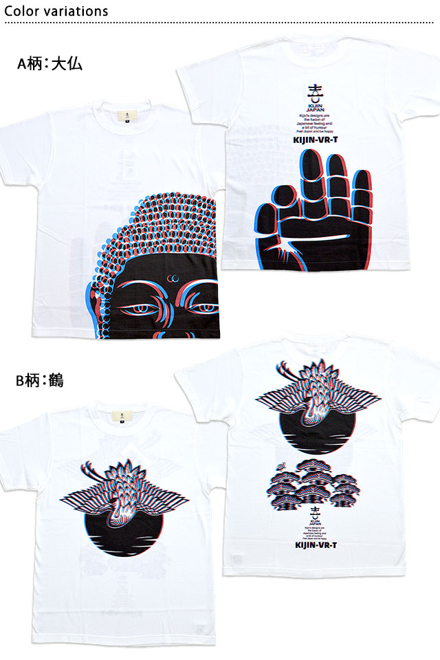 KIJIN VR半袖Tシャツ 喜人 KJ-12011 和柄 和風 3D 大仏 鶴 音神 ドクロ 鯉 きじん