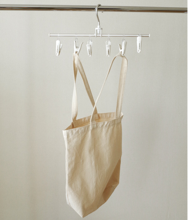 マスク干しにもぴったりな小物ハンガーです。ハンガー1本分の横幅でマスクを最大6枚干すことができます。ピンチの間隔を調整できるので、ゴム部分を伸ばす心配がないのも良いです。