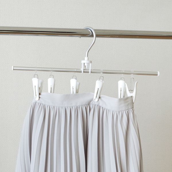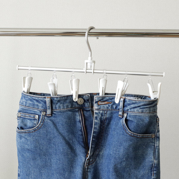 ピンチは可動式で間隔調整が楽々です。ボトムス干しやマスク干しにも大活躍です。