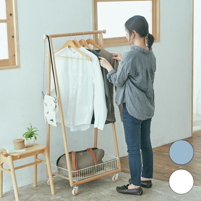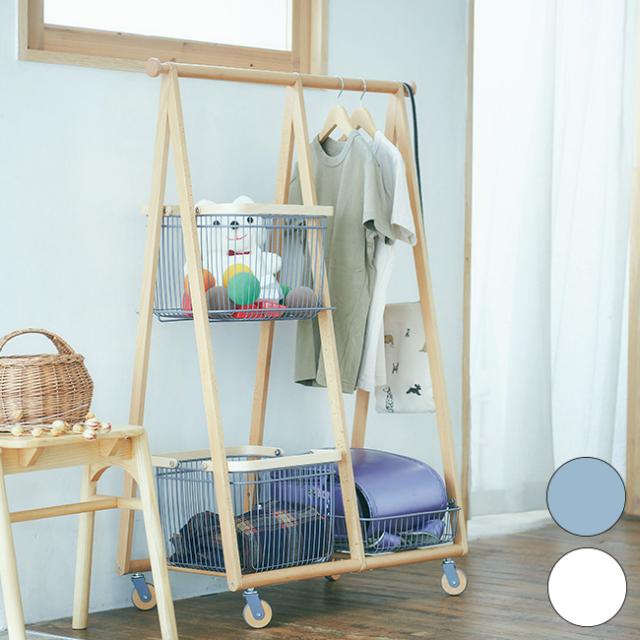 コンパクトなサイズのバスケット付きハンガーラック。子供も手が届きやすいサイズなので、親子で一緒に使えます。子供部屋やリビングにもピッタリ。