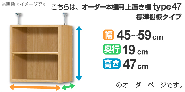 専用 上置き棚 標準棚板 type47 オーダー本棚 奥行19cm 幅45-59cm用 ( オーダーメイド 天井つっぱり 本棚 収納棚 セミオーダー )