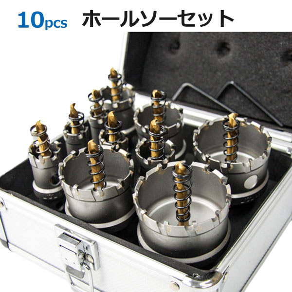 切れ味、耐久性抜群!超硬ホールソーセット10pcs マルチホルソー 穴開け 金工 旋盤 配管 ドリル