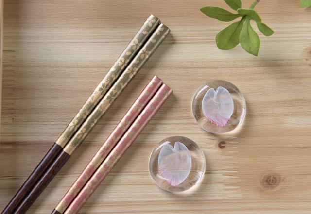 津軽びいどろ 若狭塗の夫婦箸 びいどろの箸置き セット sakura 花びら めおと箸 おはし 箸置き ガラス 結婚祝い 結婚記念日 金婚式 両親 プレゼント ギフト 贈り物 和風 高級 伝統 日本好き 【送料無料】