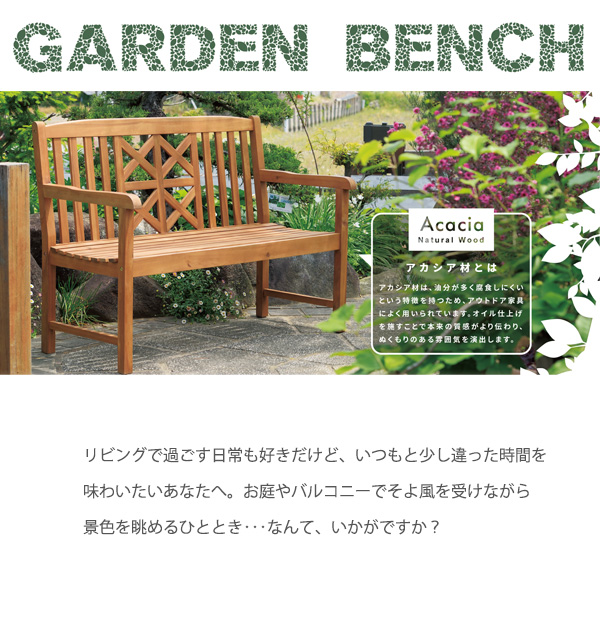【キーワード】 天然木 アカシアベンチ おしゃれ 木製ベンチ 屋外 ガーデンベンチ ガーデンチェアー 2人掛け ガーデニングベンチ オイル仕上げ 背もたれ付き 肘付き