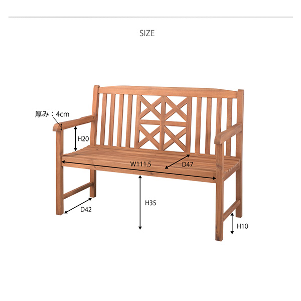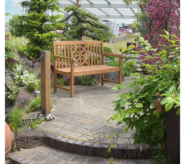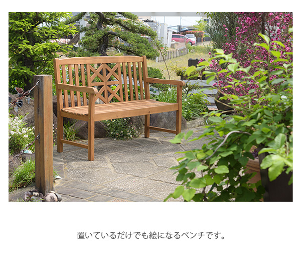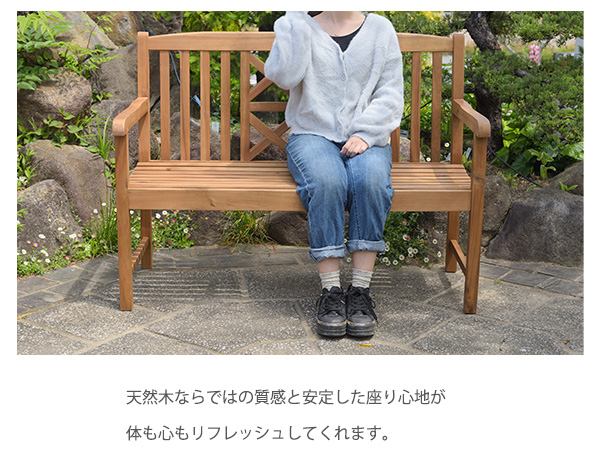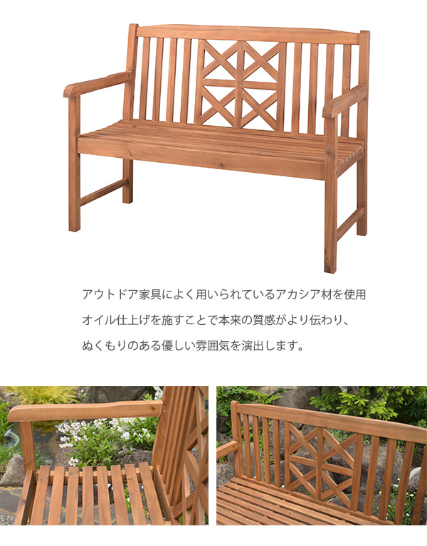 アカシア 天然木の高級感 ガーデンベンチ / 木製ベンチ 背もたれ付き おしゃれ 屋外 ガーデンチェアー 2人掛け アウトドア エクステリア ベンチチェア