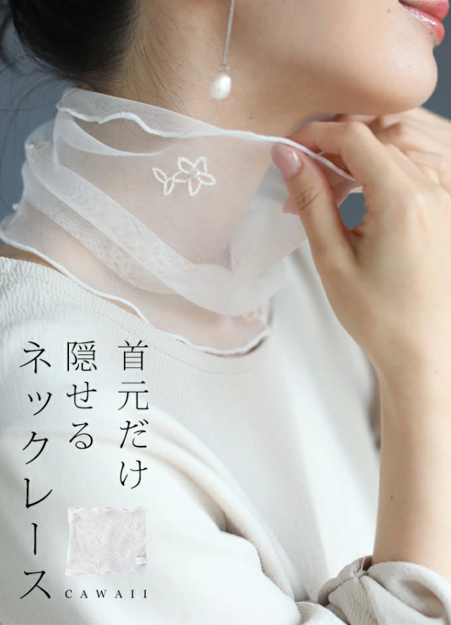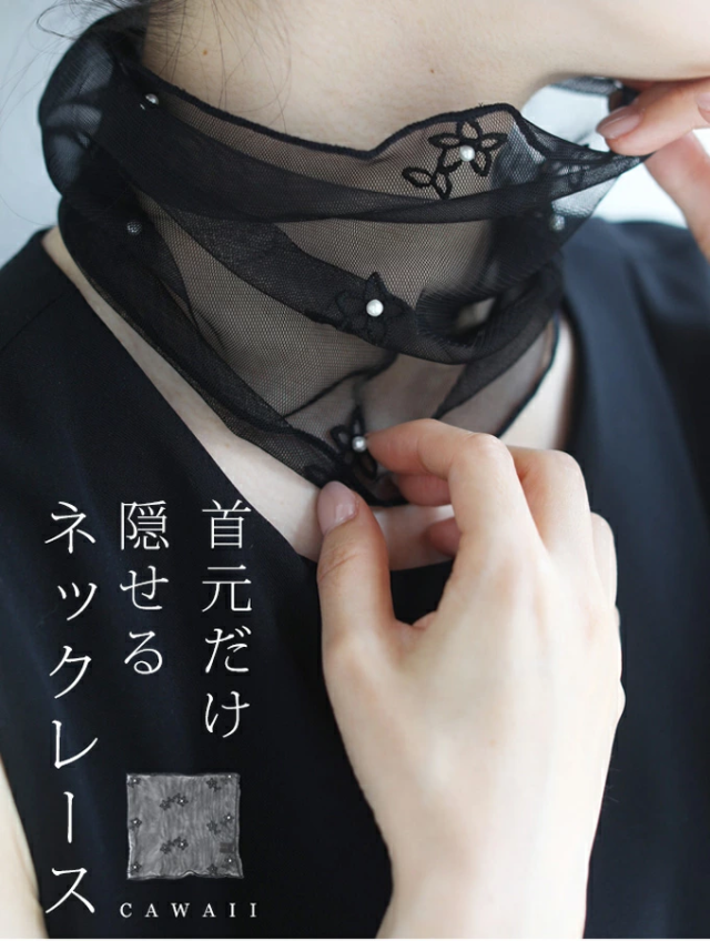 再販3月10日 首元だけ隠せるネックレース wk00118iv cawaii ネック アクセサリー ネックウォーマー レディース 花柄 シアー レース 薄手 体型カバー レイヤード お呼ばれ 通勤 シルエットカバー 通勤 オフィス きれいめ 上品 40代 50代 ミセス 母の日