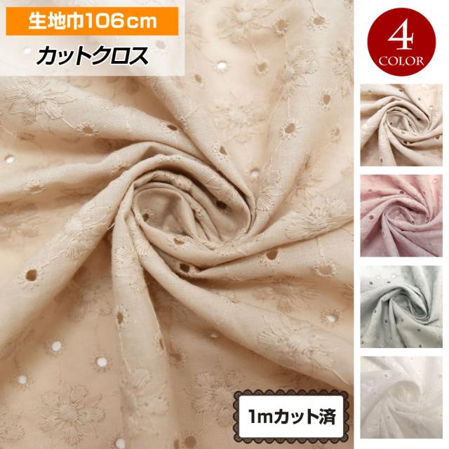 生地 小花柄 刺繍 生地 106cm巾x1mカット済 衣装 手作り レース マスク カフェカーテン ハンドメイド 布地 綿100% LF100-21428[M便 1/2]