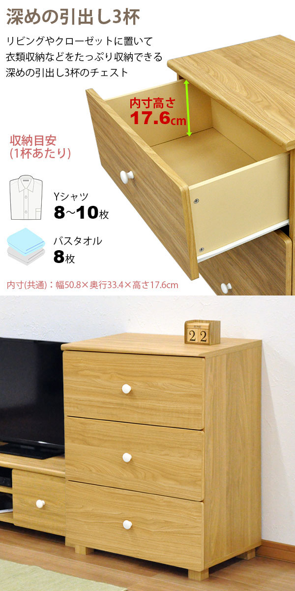 深めの引出し3杯のチェスト