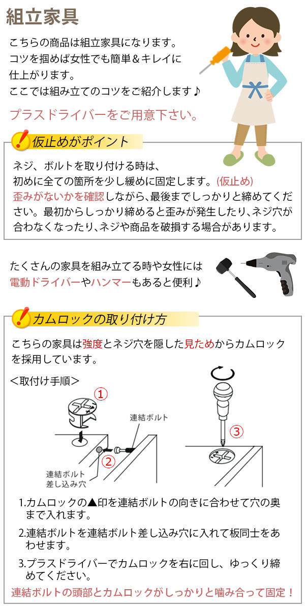 お手持ちのドライバーのみで組立てできる家具