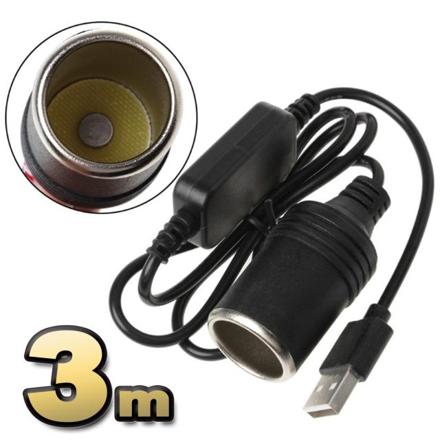 USB ポートから シガーライターソケットに 変換 パソコンのUSBからも使用可能 トラック 12v対応 変換電源 【3m】