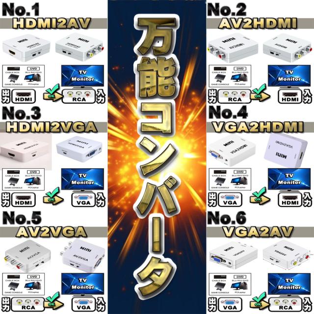【万能コンバータ】PC/DVDからTV/モニターへ出力する為の変換コンバータ コネクタ 【6タイプから選択可能】