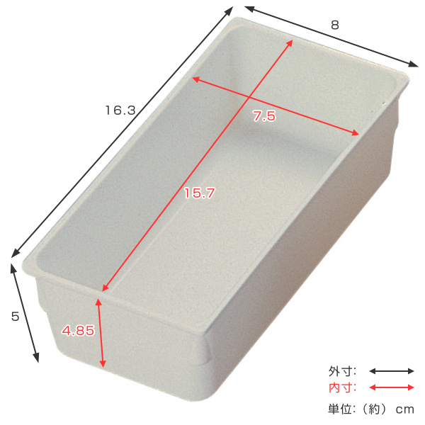 | サイズ | 外寸:約 幅16.3×奥行8×高さ5(cm) 内寸:約 幅15.7×奥行7.5×高さ4.85(cm) |