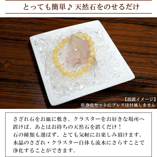 天然石のさざれは、天然石ブレスレットなどのアクセサリーの浄化にお使い頂けます。 お皿などにさざれを敷き詰め、その上に天然石アクセサリーを乗せてお使い下さい。