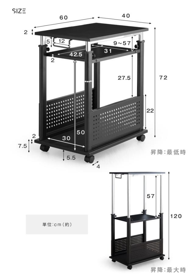 外寸:幅40×奥行60×高さ72〜120cm