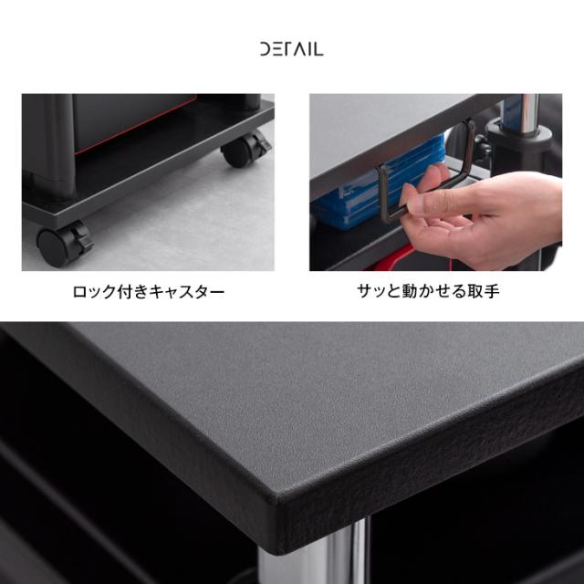 ゲーミング PCワゴン 昇降式72〜120cm サイドデスク マルチワゴン パソコンカート 昇降式L字デスク デスク オフィスワゴン サイドテーブル ラック 棚 おしゃれ 昇降 CYBER GROUND【商品番号:56800053】