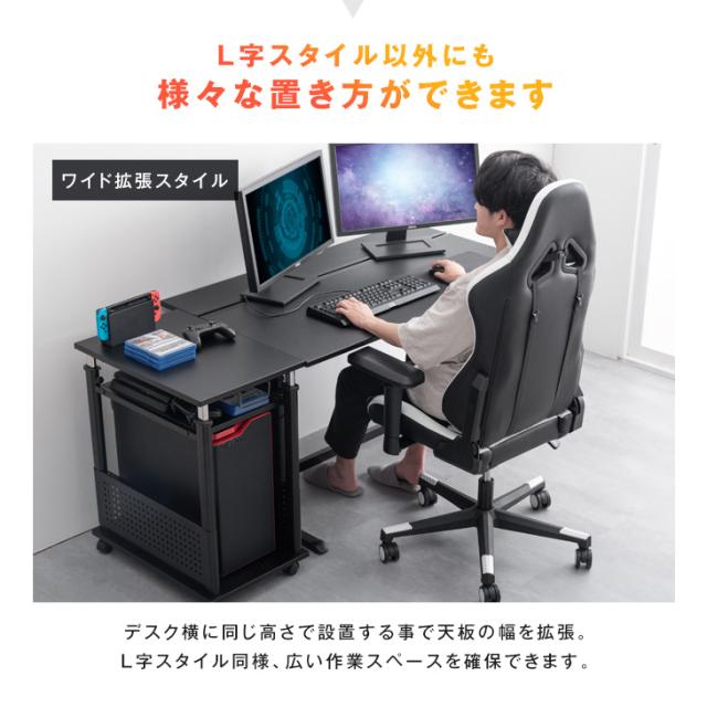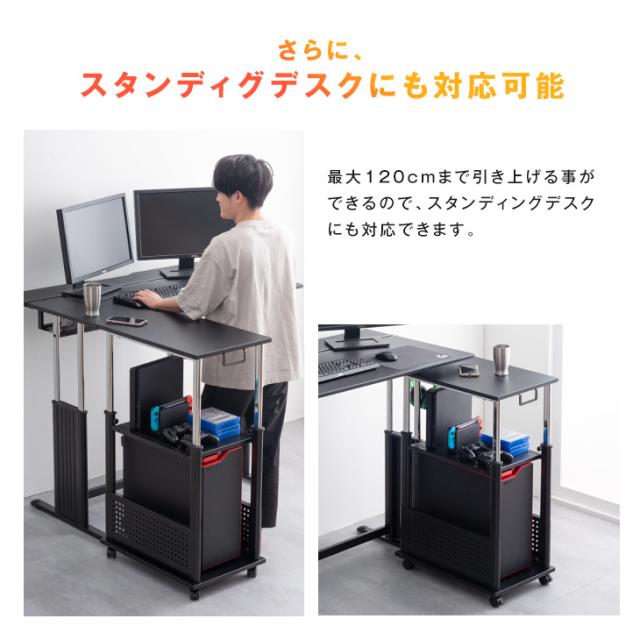 【正午〜P5%還元】 ゲーミング PCワゴン 昇降式72〜120cm 昇降式 L字デスク デスクワゴン サイドワゴン PCラック ワゴン サイドデスク ゲーミングデスク ラック パソコンラック PCラック 棚 キャスター