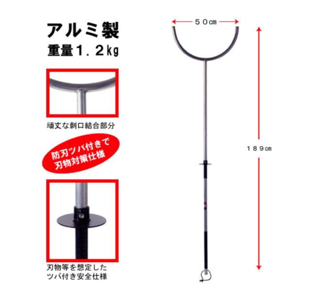 ツバ付きなので、さらに安全に使用できます。 サスマタは出来れば数人で相手を取り押さえるのがベストです。 予算は少ないけれど、しっかりとした頑丈な商品を数多くの 設置したい場所にオススメの商品です。 学校や公共施設など入札にも、数多く納入されています。