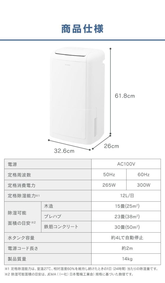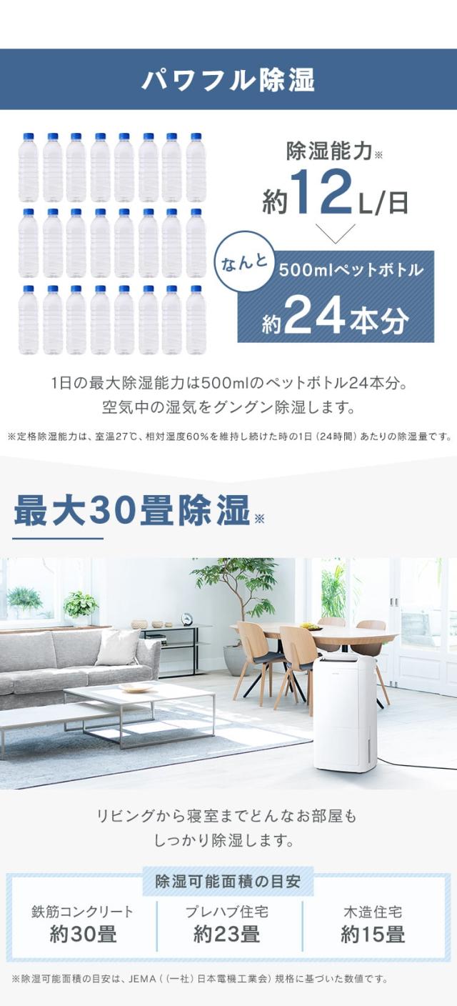 ※除湿可能面積の目安は、JEMA((一社)日本電機工業会)規格に基づいた数値です。