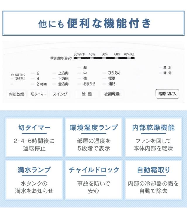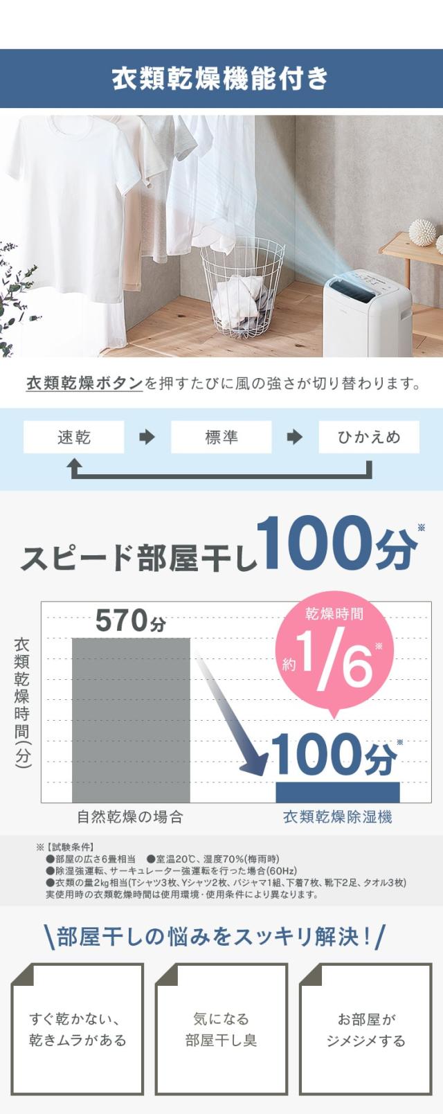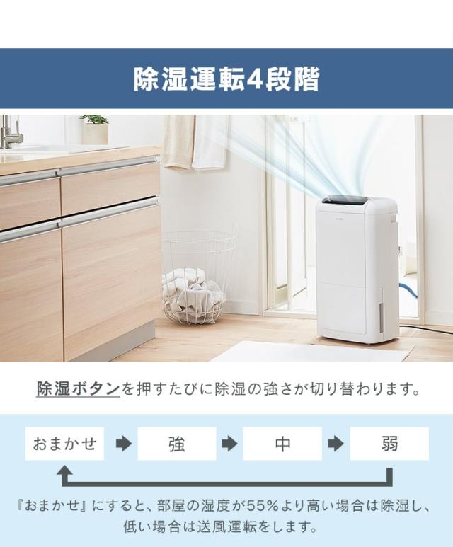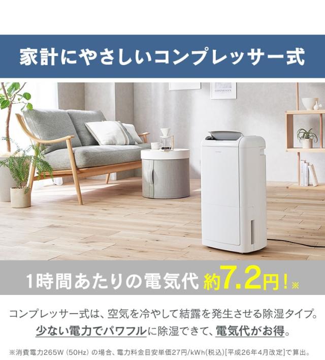 ※定格除湿機能力は、室温27℃、相対湿度60%を維持し続けたときの、1日(24時間)あたりの除湿量です。