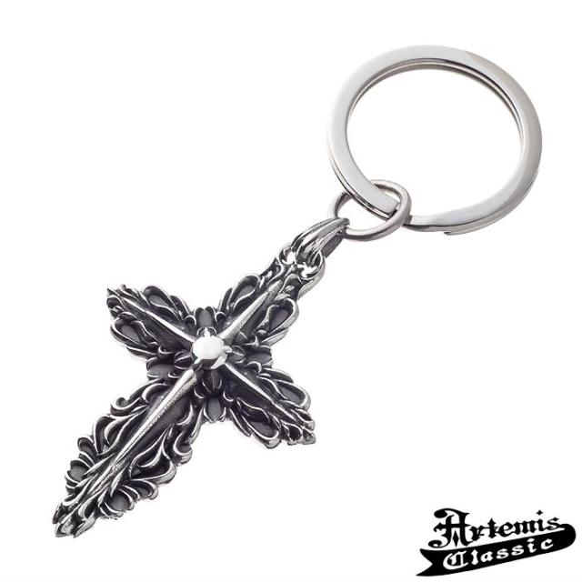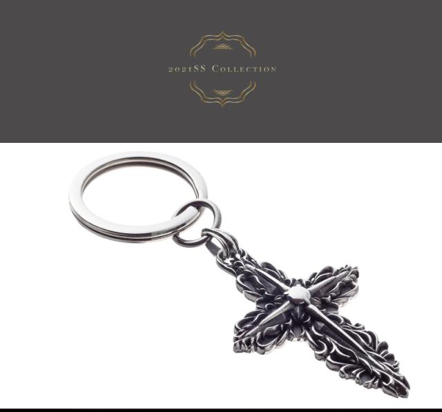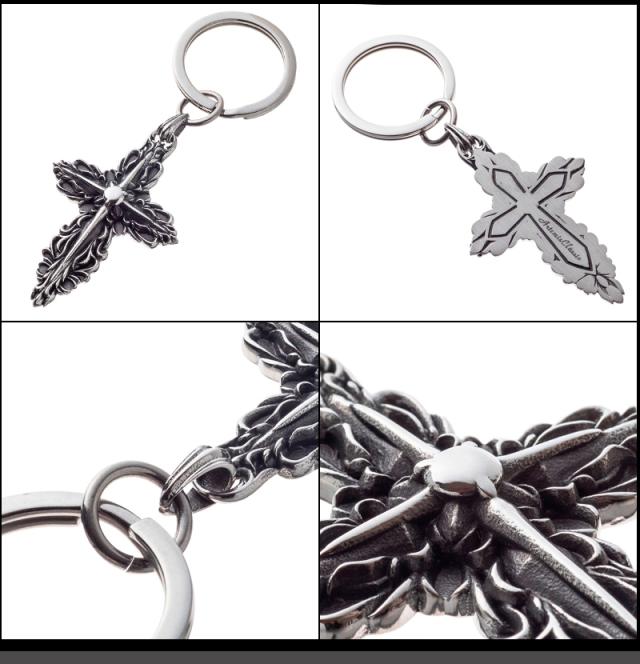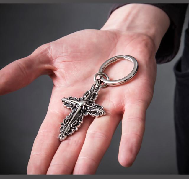 幾重にも重なる唐草と十字架で、クロスも象ったアートなキーホルダー。