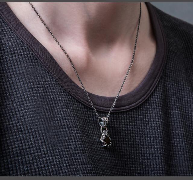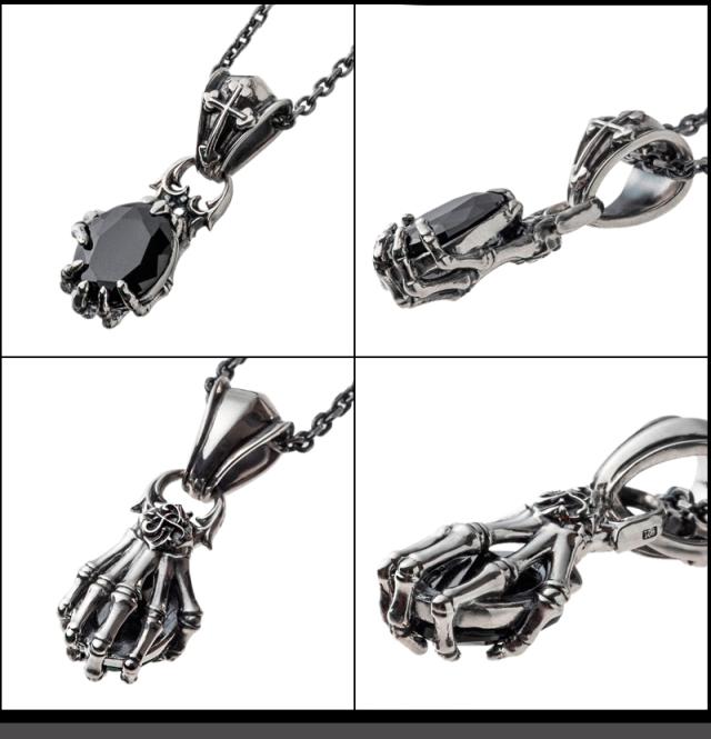 | 仕様 | 髑髏の手をモチーフにしたデザインペンダント。 スカルハンドが石をつかむユニークなデザイン。 細かく繊細に彫り込んだデザインで、リアルに造られた精巧な作りが魅力。 石が胸元に程よい存在感を与え、着け心地も良好。 石はシックなCZブラック。裏にはブランドと925の品質刻印。 |
