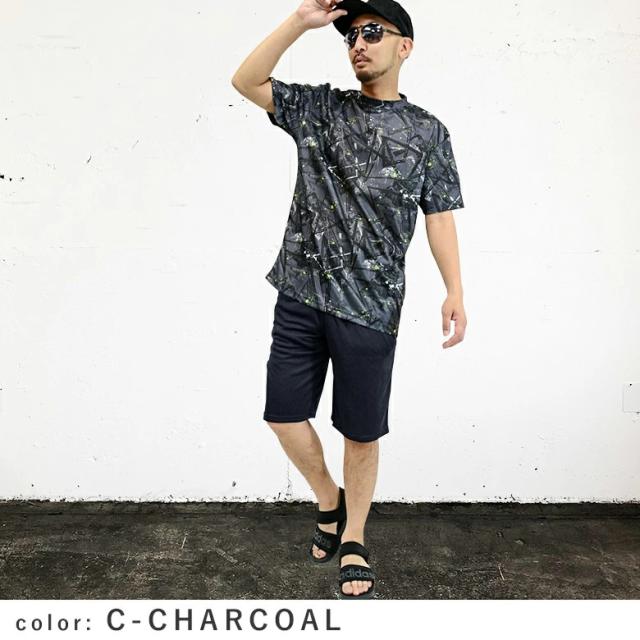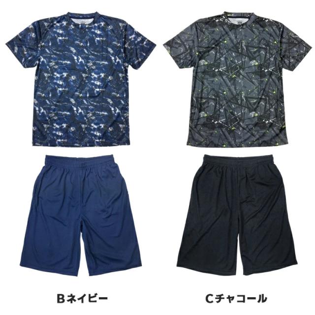 【閉店セール】メンズ SET UP 上下セット セットアップ 31482 ストレッチ 吸汗速乾 通気性 スポーツ 部屋着 練習着 トレーニングウェア ルームウェア 丸首 メンズ ウェストゴム グレー ネイビー ブラック チャコール M L LL Tシャツ+ショートパンツセット