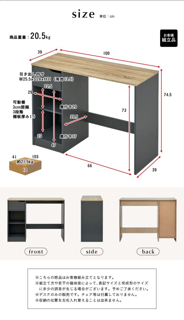 【引き出し/可動棚付き】リビングデスク Berg(ベルク) 幅100cm 3色対応 学習机 学習デスク リビング学習 パソコンデスク 勉強机 勉強デスク 木製 子供 大人 シンプル おしゃれ モダン 子供部屋