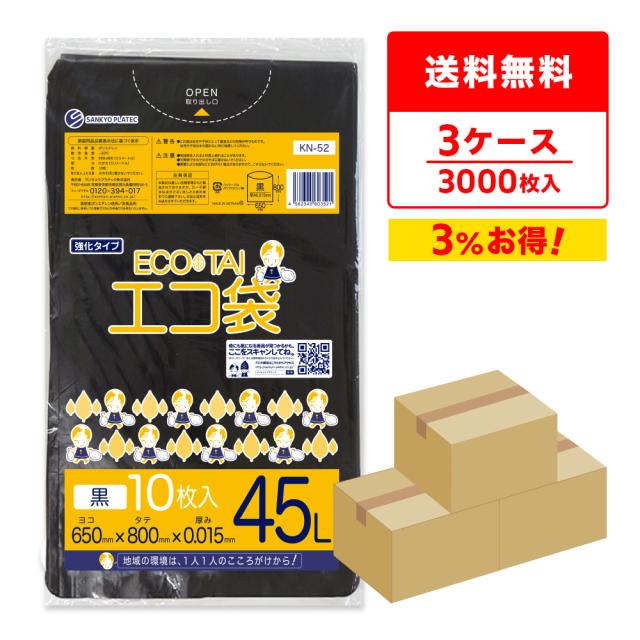 ごみ袋 45リットル 薄手 黒 65x80cm 0.015mm厚 10枚x100冊x3箱 KN-52-3 ゴミ袋 ポリ袋 ビニール袋