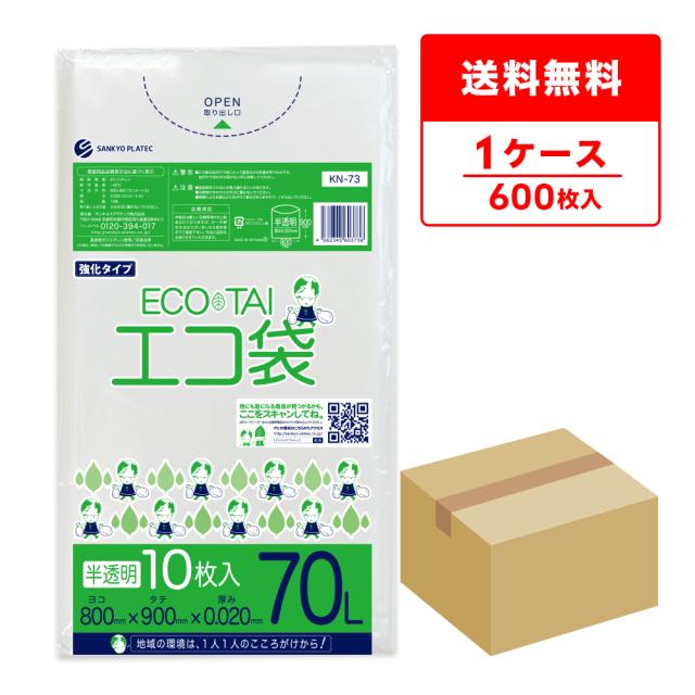 ポリ袋 ゴミ袋 70リットル 薄手 半透明 80x90cm 0.020mm厚 10枚x60冊 KN-73 ごみ袋 袋 70l ナチュラル 送料無料 サンキョウプラテック