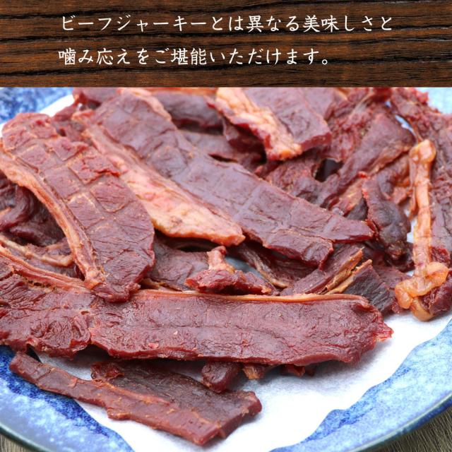 ビーフジャーキーとは異なる美味しさと噛み応えをご堪能いただけます。