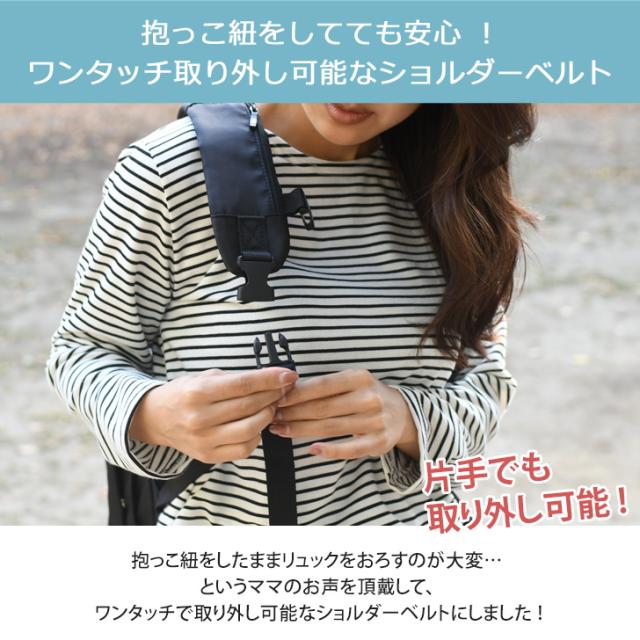 抱っこ紐をしていてもワンタッチで簡単に取り外し可能なショルダーベルト