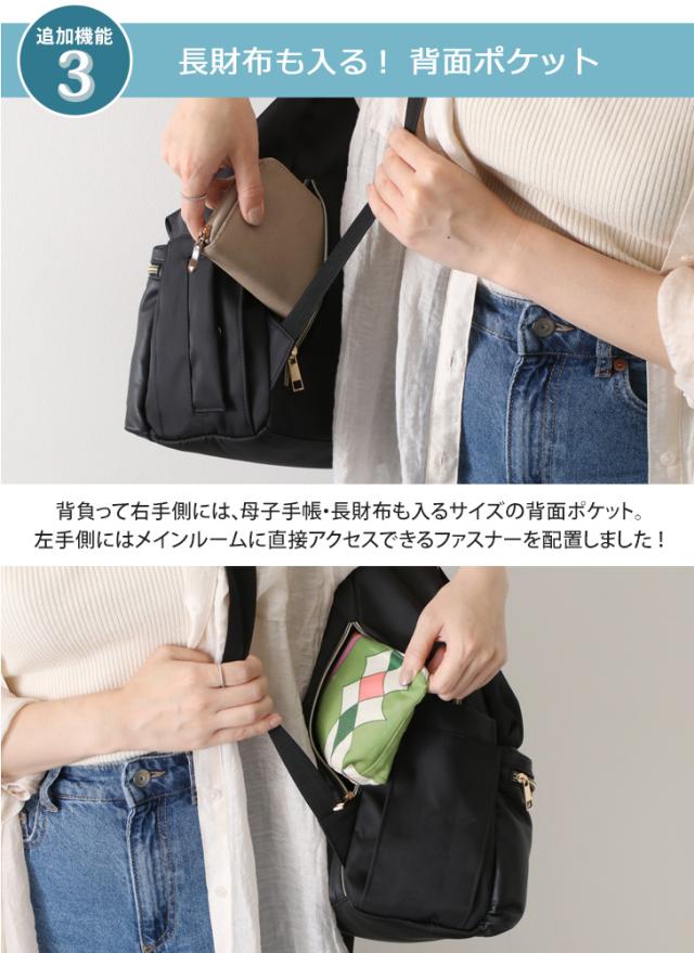ショルダー部分にicカードや小物が入れられる、便利なファスナーポケット