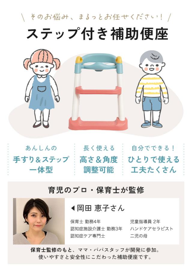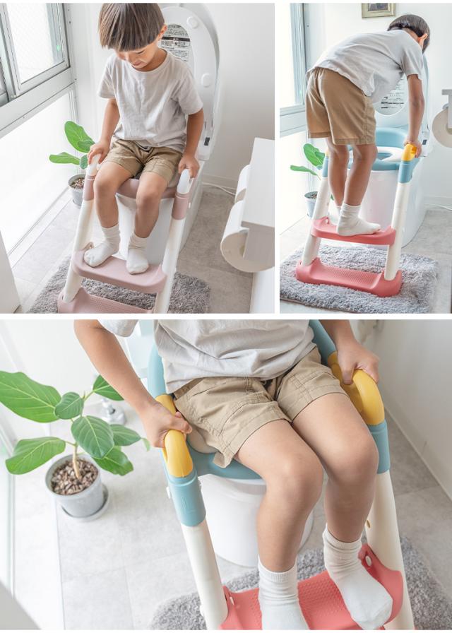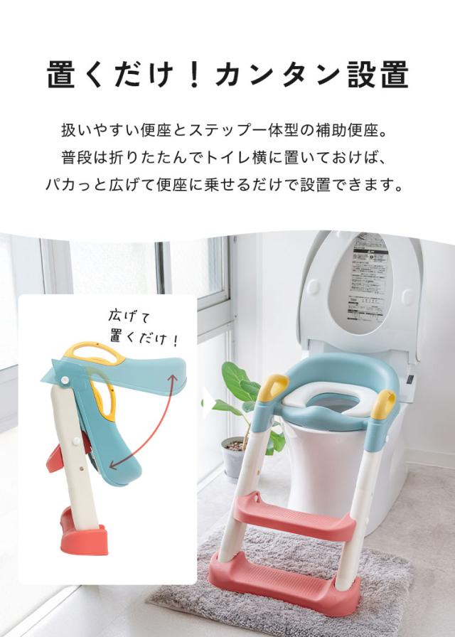 子供用 子ども用 補助便座 補助 便座 便座補助 ステップ ステップ付き キッズ トイレ 折り畳み収納 高さ調整 角度調整 お掃除簡単 耐水性 水洗い可能 飛び散り防止 PVC素材 2重滑り止め トイレトレーニング こども用 折りたたみ
