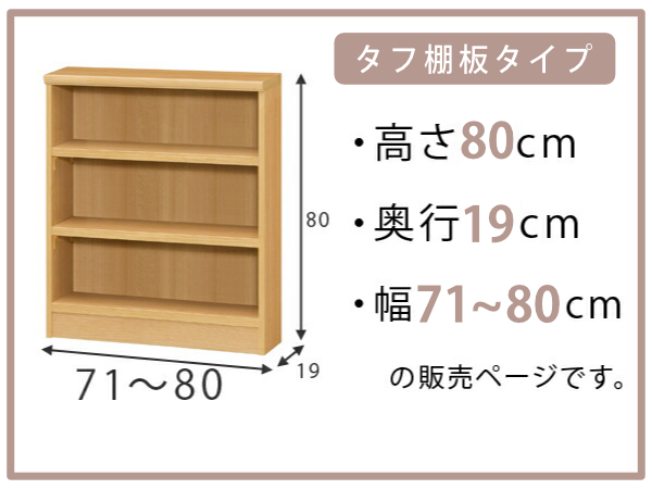 オーダー本棚 タフ棚板 幅71-80cm 奥行19cm 高さ80cm ( 収納棚 書棚 本棚 壁面収納 日本製 オーダー ラック 書庫 オーダーメイド 文庫本 コミック フリーラック )