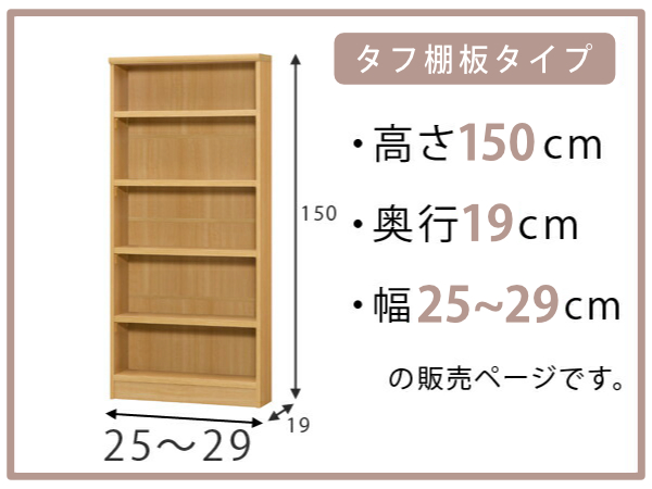 オーダー本棚 タフ棚板 幅25-29cm 奥行19cm 高さ150cm ( 収納棚 書棚 本棚 オーダー ラック 書庫 壁面収納 日本製 オーダーメイド 文庫本 コミック フリーラック )
