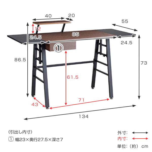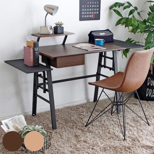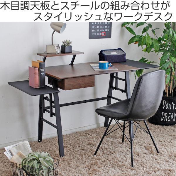 デスク 幅134cm ラック付き 収納 スチール脚 木目調 引き出し ヴィンテージ調 机 ( ワークデスク パソコンデスク コンパクトデスク 学習机 可動棚 PCデスク 勉強机 引出し 棚付き テレワーク おしゃれ リビング )