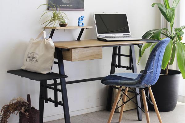 木目調天板と黒スチールの組み合わせがスタイリッシュなデスク