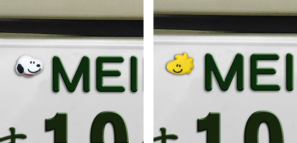 ナンバープレートをデコレーションしながら、ナンバーボルトの汚れやキズから守るボルトキャップです。スヌーピー&フレンズのデザインです。両面テープで簡単に取り付けできます。ナンバープレートの盗難防止にもなります。