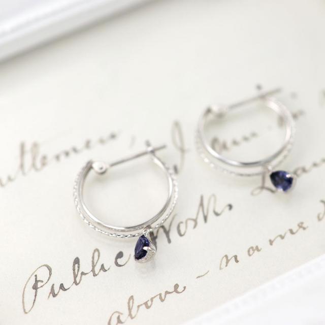 | 地金・素材 | ・アイオライト(インド産) ペアシェイプカット(品質保証書付き) ・地金:K14WG(14金ホワイトゴールド) ※刻印等は異なる場合がございます。 |