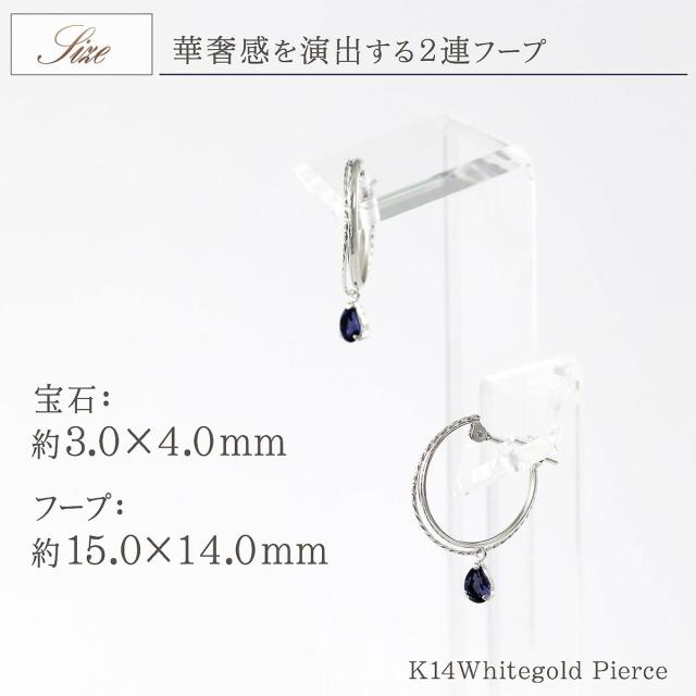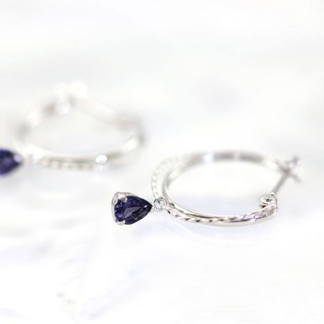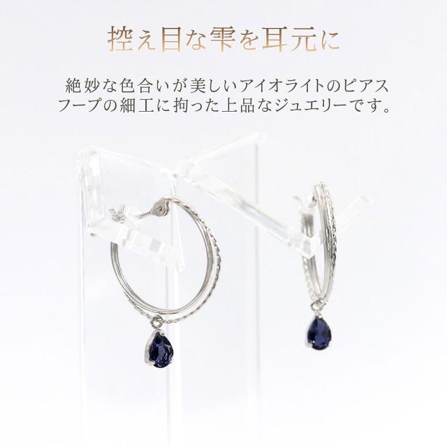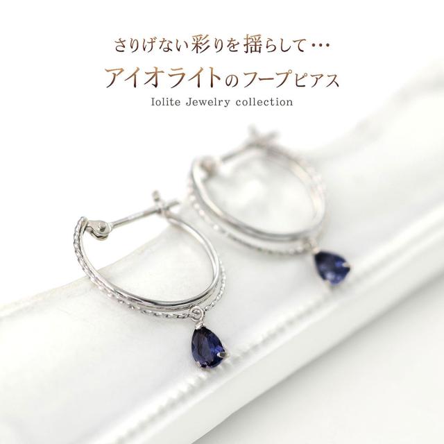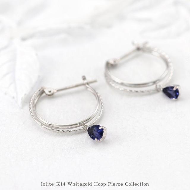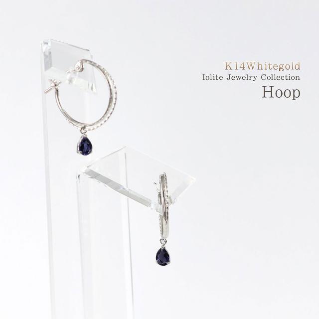 ピアス フープ 小さめ アイオライト レディース ゆれる 14金 ホワイトゴールド ティアドロップ 雫形 涙型 輪っか リング フープピアス K14 14K ブルー 青 藍色 揺れる 3月 誕生石 プレゼント 宝石 ギフト 贈り物 女性 彼女 嫁 本物 ホワイトデー お返し 新しい誕生石