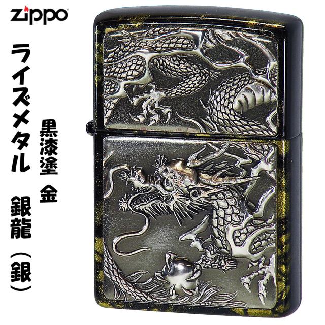 zippo ジッポーライター ライズメタル銀硫化 銀龍ドラゴン 干支 亀甲金 黒漆 かっこいい オシャレ メンズ ギフト プレゼント 送料無料