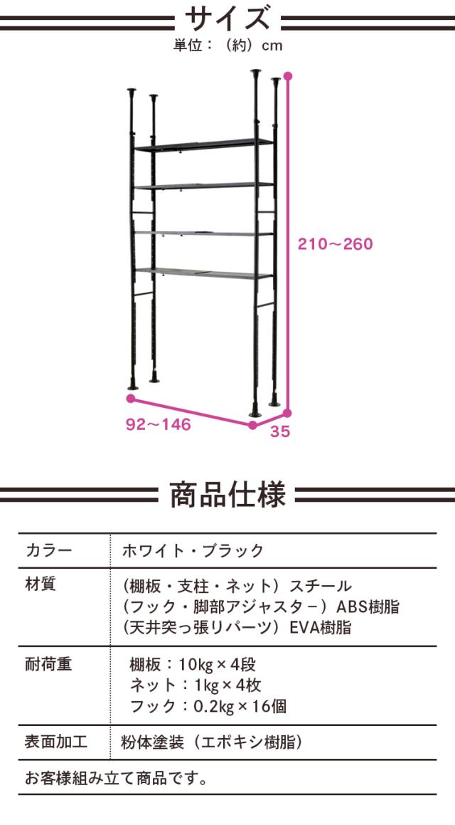 突っ張りシェルフ TSSH-9235 全2色 突っ張りラック 突っ張り収納 突っ張り棚 つっぱりラック つっぱり収納 つっぱり棚 突っ張り シェルフ ラック 棚 収納 伸縮 高さ調整 幅調整 奥行35 送料無料 【int】
