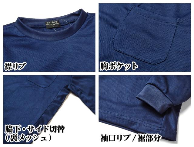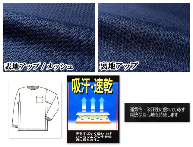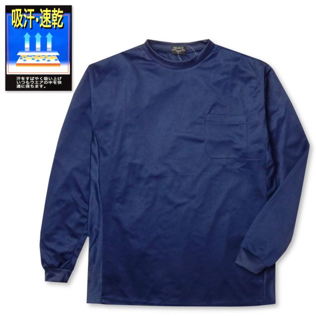 【送料無料】紳士 メンズ 吸汗速乾 長袖 Tシャツ メッシュ 通気性 ドライ 爽快な着心地 無地 胸ポケット M L LL ys-0004c-nv【メール便対応】