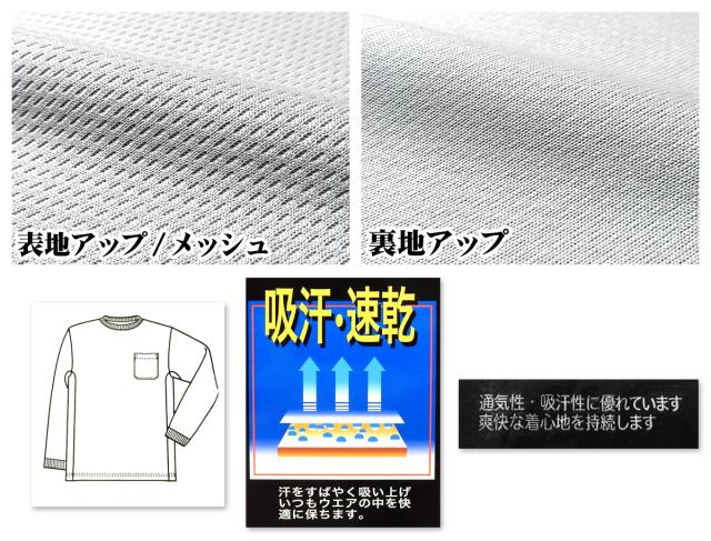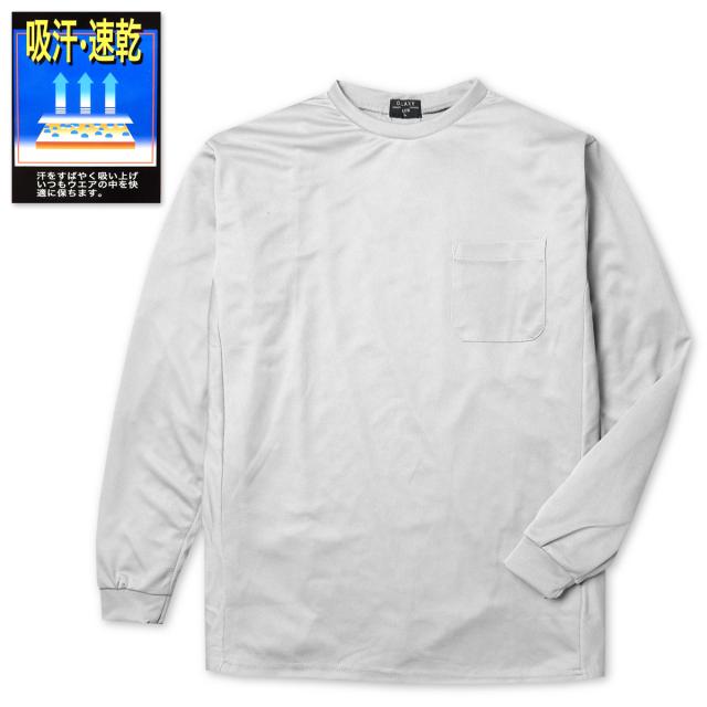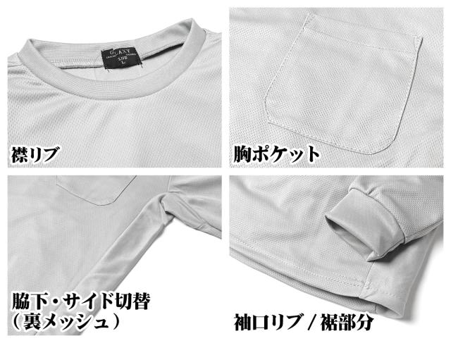 【送料無料】紳士 メンズ 吸汗速乾 長袖 Tシャツ メッシュ 通気性 ドライ 爽快な着心地 無地 胸ポケット M L LL ys-0004b-gy【メール便対応】