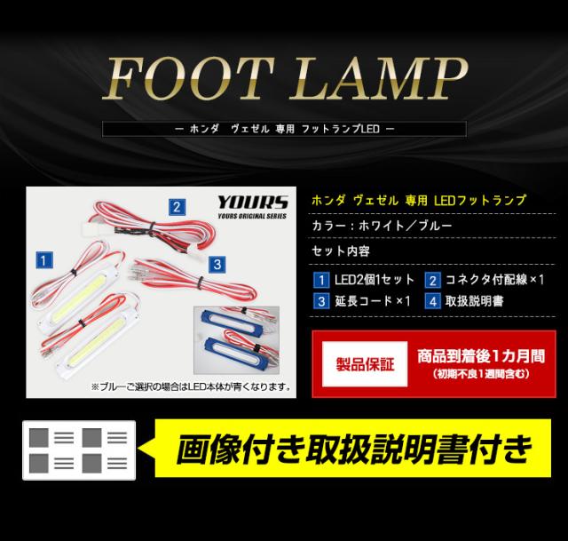 ヴェゼル RV系専用 LEDフットランプキット 2個【全2色:ブルー/ホワイト】LED ホンダ HONDA フットランプ 足元 LED ホワイト ブルー 送料無料 ユアーズ YOURS [5]-1