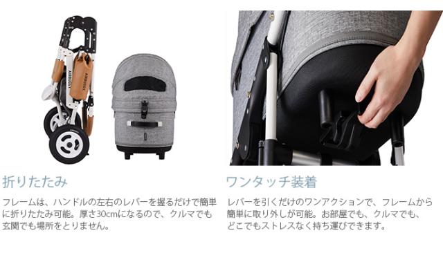 持ち運びは、両手のハンドルで安全に。エアバギーならではの快適な走り心地はそのままに、出入りしやすく、よりスマートに生まれ変わりました。