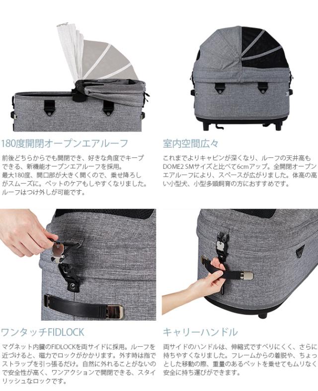 使いやすい180°オープンエアールーフを採用したDOME3シリーズ。 DOME2シリーズ SMサイズと比べて天井高が6?pアップし内部空間もより広く。体高の高い小型犬、小型多頭飼育の方におすすめです。
